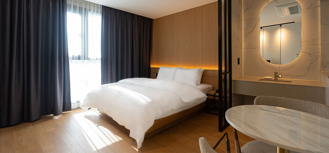 모던한 인테리어의 아늑한 공간인 호텔 로다의 스탠다드 룸, 성공적인 내일을 준비하는 비즈니스 고객님을 위해 편안한 휴식과 편의를 제공해 드립니다.